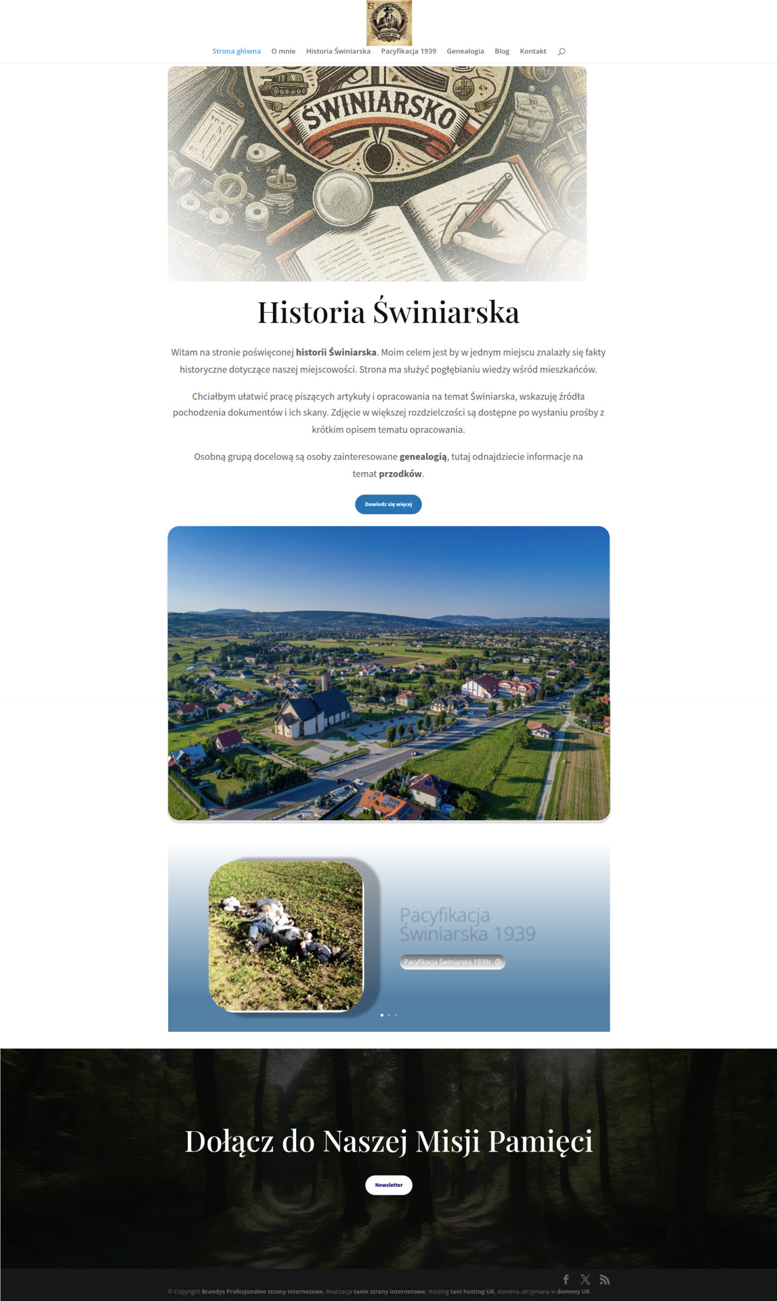 Serwis swiniarsko1939.com.pl to projekt historyczny poświęcony miejscowości Świniarsko, położonej w województwie małopolskim. Strona stanowi kompendium wiedzy o lokalnej historii, obejmujące zarówno początki wsi sięgające średniowiecza, jak i dramatyczne wydarzenia z okresu II wojny światowej.